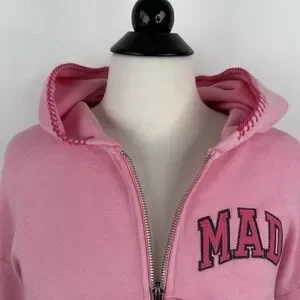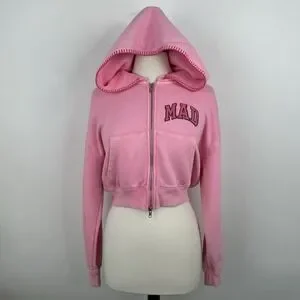 NWT GAP MadHappy Full Zip Crop Hoodie Sweatshirt MEDIUM Pink Embroidered Logo