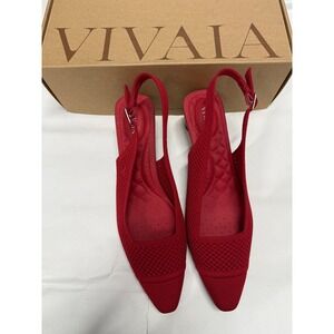 VIVAIA Slingback Pumps Knit Pointed Toe Block Heel Red Shoes size EU/40 US/9