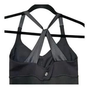 Lululemon Power Y Satin Strap Tank Top Black Size 4 Built-In Bra Yoga Activewear