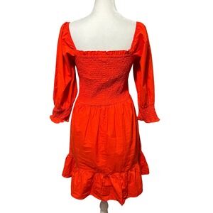 Keywords: orange dress, smocked dress, square neck dress, Anthropologie dress, ruffle hem dress, Sim & Sam, small dress, cotton dress, boho dress, bohemian dress, vacation dress, day dress, western dress, cottagecore dress