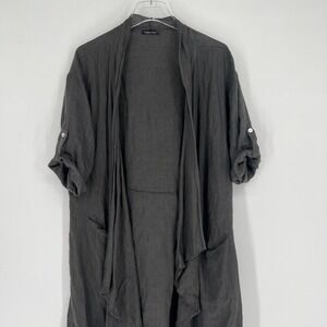 Sabina Bach Cardigan Women One Size Linen Gray Lagenlook Asymmetrical Open Front