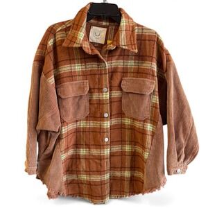 Fantastic Fawn Plaid Corduroy Shacket Oversized Button Up Shirt Jacket Women S