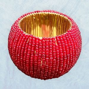 Set of 8 Napkin Rings Red sequin with gold lining - EUC