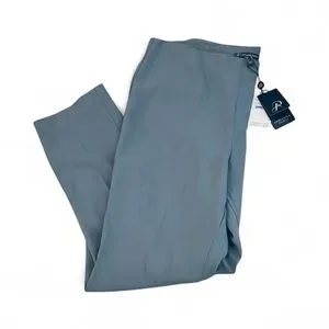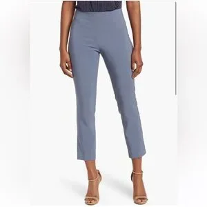 Stylish and comfortable pull-on straight leg pants, perfect for work wear. Color is blue/gray.