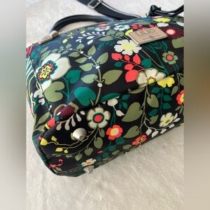 The compact LiliÓ multipurpose handbag from the Morris Garden collection combines functionality and beautiful design. This light and soft to the touch handbag offers multiple zipped compartments. LiLiÓ Amsterdam continues the fresh trend made famous by the founder of Oilily Marieke Olsthoorn. Discover the visually appealing and high-quality products of LiLiÓ, now under the direction of designer Leontine Hagoort and her creative team. Equipment: three compartments with zip fastening, the central part contains a zip pocket and two open pockets, a front zip pocket, two upper handles for easy holding (height approx. 13 cm), removable and adjustable shoulder strap, protective studs to protect the bottom.