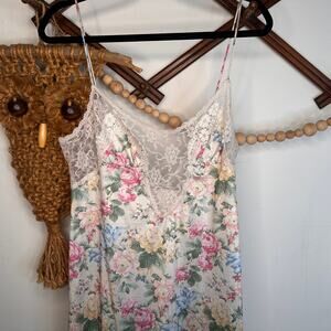Vintage Floral Lace Detil Satin Slip Nightie Dress