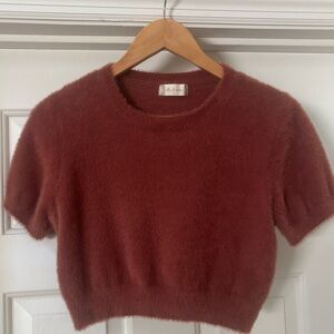 Altar’d State Fuzzy Cropped Short Sleeve Sweater Top Size M Rust Brown Soft Cozy