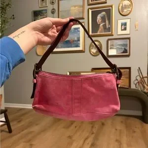 Y2K Pink Suede Coach Hamptons Demi Baguette Shoulder Bag