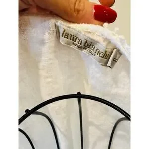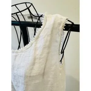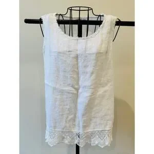 Laura Bianchi Women Sm White Linen Tank Top Lace Trim Sleeveless Italian Blouse