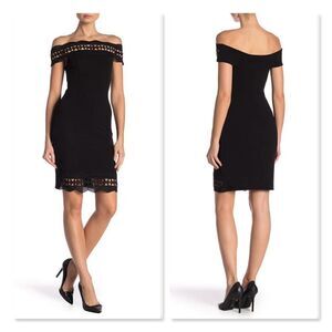 Love by Design Off-the-Shoulder Lace Trim Dress sz Large in Black.