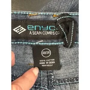 Keywords: Enyce jeans, Sean Combs jeans, mens jeans, relaxed fit jeans, blue denim jeans, embroidered jeans, plus size jeans, 48/34 jeans, streetwear jeans, casual jeans, designer jeans, vintage jeans, logo jeans, big and tall jeans