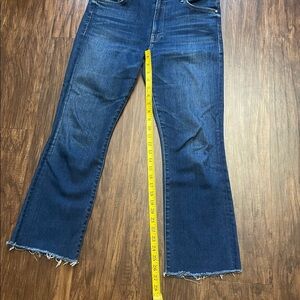 "This iconic mid-rise bootcut has an ankle-length inseam and raw hem. Cut from stretch denim, Sweet Lime is a dark blue wash with super-subtle fading and whiskering.