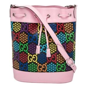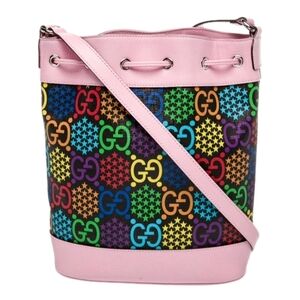 Gucci Psychedelic Multicolor Print Bucket Bag Pink with Drawstring (EUC)