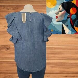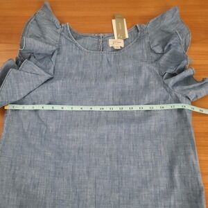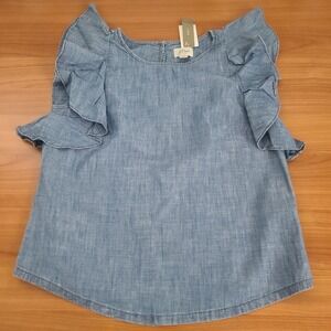 J.Crew Women's Blue Chambray Ruffle Blouse Size 6P – Lightweight Summer Top