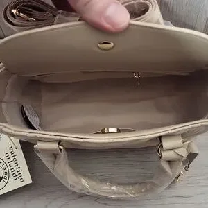 Valentino Orlandi Light Taupe Small Crossbody Purse Satchel Vegan Leather NEW