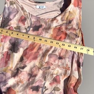 Keywords: Watercolor, Romantic, Cottagecore, Boho, Lagenlook, Italian Fashion, Silk Blend, Floral, Summer, Breezy, Feminine, Ruffle Hem, Pastel, Garden Party, Artful