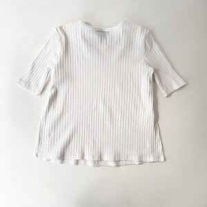 3x1 NYC Ribbed Solid White Split Hem 3/4 Sleeve Cotton Blend Top - Medium