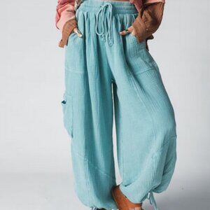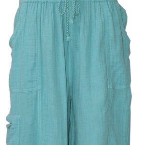Three Bird Nest Cool Coast Wide-Leg Pants Teal Pocket Drawstring S