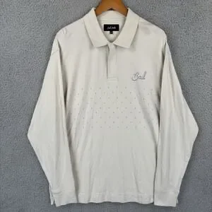 Bad Birdie Reflecting Pond Long Sleeve Polo Shirt Mens XL Beige Golf