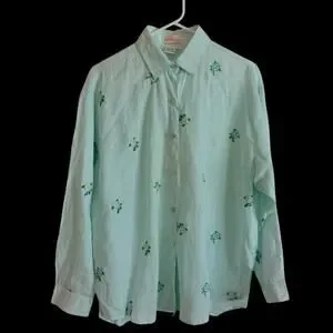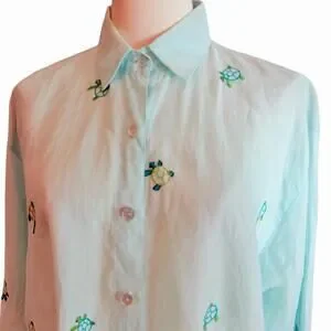 Casey Coleman Linen Shirt Womens Size Medium Embroidered Sea Turtles Resort
