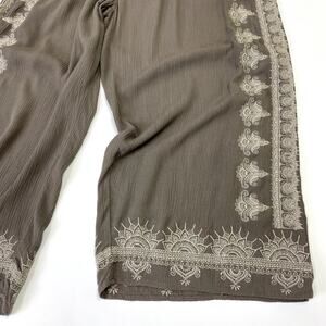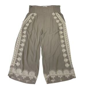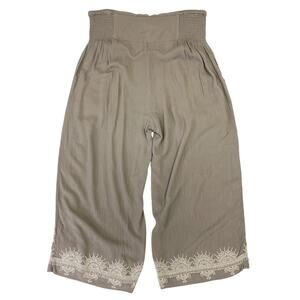 Sundance Medallion Embroidered Wide Leg Cropped Pants L Boho Festive