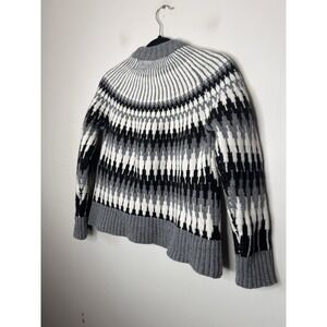 Everlane 100% Wool Fair Isle Sweater Women's Gray White Long Sleeve Size Medium