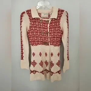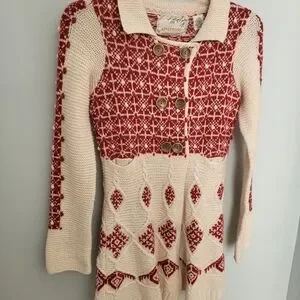 Anthropologie Sparrow Lantern Mile Sweater Long Cardigan Patteren Rare Red Small