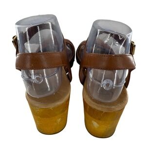 UGG Brown Leather Heeled Sandals Wooden Clogs Buckle Accents Women's 9 Retro