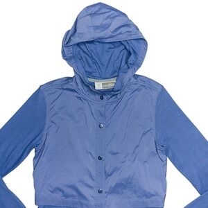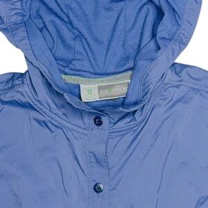 Exofficio Buzz Off Womens Insect Shield Hooded Jacket XS Blue Button Lightweight