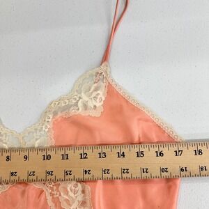Vintage Satin Nightgown Dress Long Womens M/L Peach Lace Babydoll Slip Dress