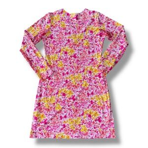 IBKUL Womens Pink Yellow Abstract Floral Sun Dress Long Sleeve UPF 50+ Small