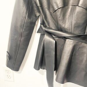 Ralph Lauren Size 2 Black Label Soft Lamb Leather Belted Short Trench Coat