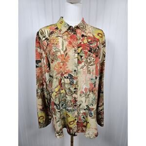 Momoni 100% Silk Floral Blouse Women's Size 8/44 Made in Italy Bohemian Designer