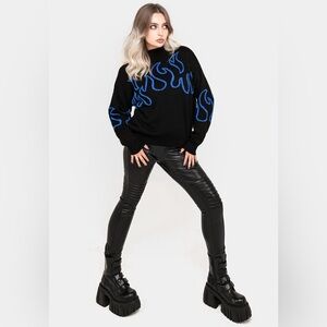 NWT Disturbia Blaze Flame Knit Sweater in Blue Size M