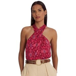Condition: New With Tags (NWT) RALPH LAUREN Women's Geo-Print Shantung Halter Blouse Size M