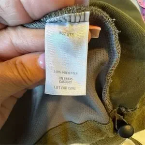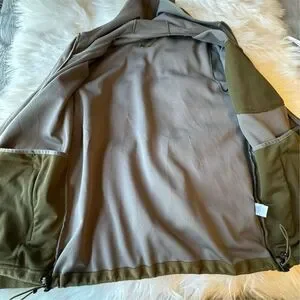 The Cabela’s men's medium wind shear jacket is designed for casual wear and outdoor activities like hiking and camping. Made from polyester, it features Wind Shear technology, a hooded design, and a full-zip front. The jacket includes two inner pockets and three outer zippered pockets, with adjustable features for a comfortable fit.