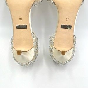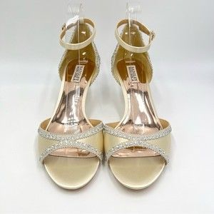 Badgley Mischka Size 10 Jeweled Ivory Satin Dress Sandals Heels Pumps Shoes