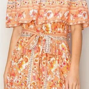 Off the Shoulder Floral Orange Maxi Dress NWT