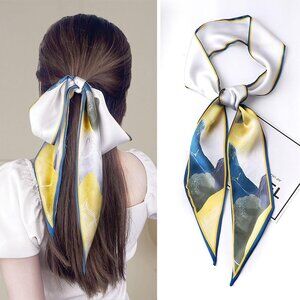 Women's oil Painting Landscape Purse Scarf For Handbags Silky Long Bag Scarfs