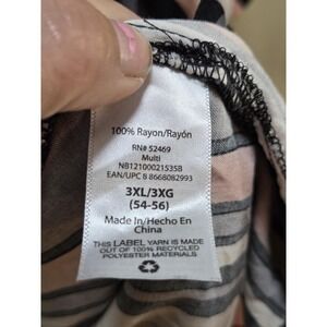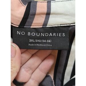Branding and label information: Interior neck label reading "NO BOUNDARIES" with size line "3XL/3XG (54-56) Made in/Hecho en China"; inner care and content label listing 100% Rayon, RN# 52469, style code NB12100021535B, color "Multi," and EAN/UPC 8 8668082993, along with note that the label yarn is made out of 100% recycled polyester materials.