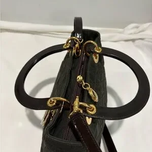 The iconic Dior charm dangles gracefully at the front, adding that signature touch of sophistication. Structured yet lightweight, it’s roomy enough for your essentials while maintaining that polished, ladylike silhouette.