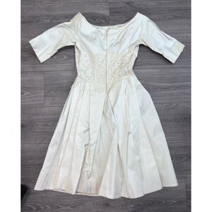 Vintage 1960s Paulines Bridal Shoppe Ivory Tea Length Wedding Dress XS Small