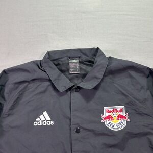 Adidas New York Red Bulls Jacket Mens Medium Black Button Up Sideline Coaches