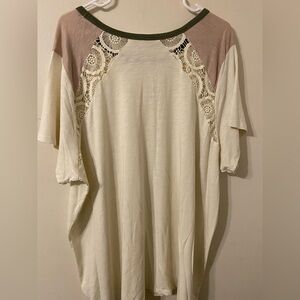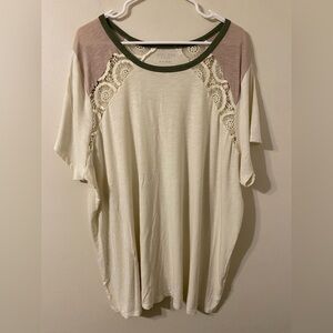 Super Soft By Torrid Slub Jersey Green Cream w/ Lace Accents Size 4X 4
