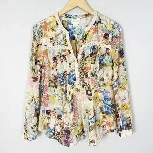 Anthropologie Maeve Floral Pullover Top Crochet Trim Boho Size 6 Women's