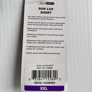 100% Polyester. Machine Wash.. Stretch woven fabric is strong, lightweight, quick-drying, and moves with your stride. Mesh panels along the side seams add extra ventilation. Reflective elements at the leg opening keep you visible. Waterproof back zippered storage pocket keeps your valuables secure on the go. Traditional brief liner with flat, chafe-free seams for comfort.