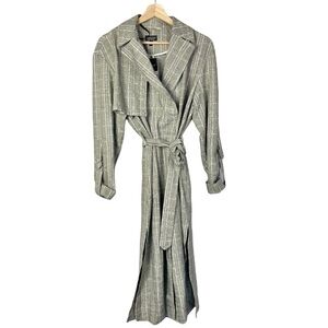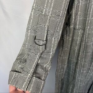 NEW TopShop Black & White Checkered Plaid Belted Mid Length Trench Coat 10