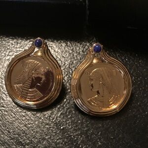 Stunning Franklin Mint earrings with a gold finish and blue accents. Inspired by Cleopatra. Adds elegance to any look.