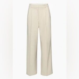 These are high-rise pants with a relaxed fit, a pleated front and slash hand pockets. They’re expertly tailored with (Re)ssential — softly structured stretch fabric that holds its form while you move easy. This fabric is sourced from a premier Portuguese mill and made with recycled materials and LENZING™ ECOVERO™ Viscose — responsibly sourced, wood-based fibres produced through a process that reduces impact on forests, biodiversity and water supply