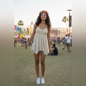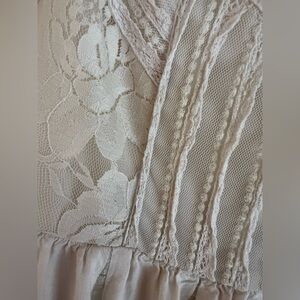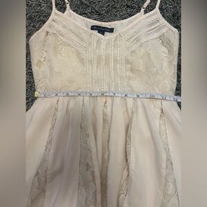 Curated from my personal teacher-owned closet! This beautiful American Eagle Outfitters dress features intricate crochet lace detailing and a flowy, romantic silhouette. Perfect for spring festivals, brunch, or a cottagecore aesthetic.